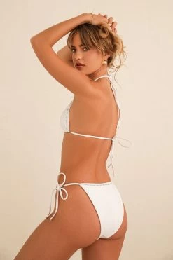 Pair your Love Me Top with our romantic new cheeky Always Bottoms. A delicate twist on the classic triangle silhouette, these bottoms are perfected with pretty lace trim and mini bow details.