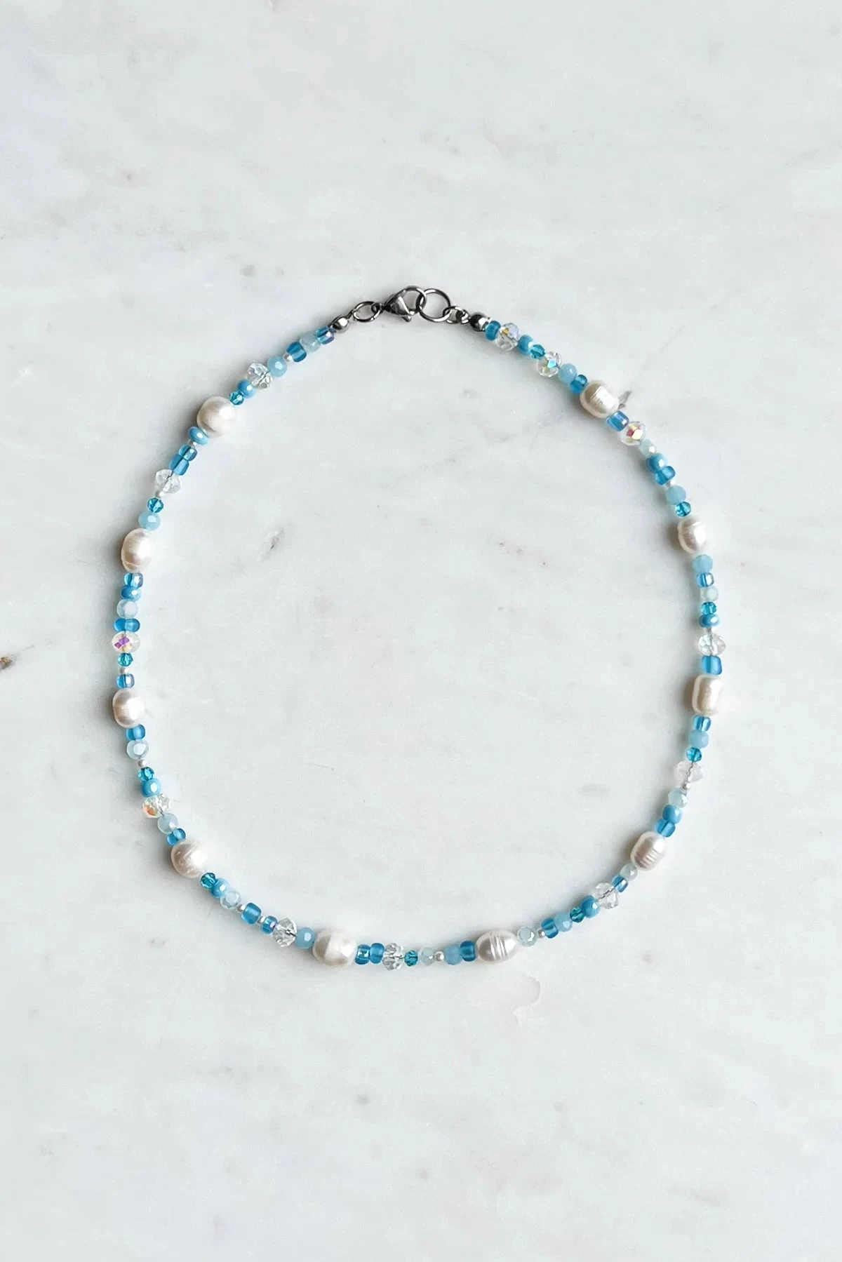 Look the part of a beach-going fashionista with this Seaside Necklace! It features beautiful blue beads and will have you looking as cool and breezy as a day by the sea. Put it on and feel the waves!