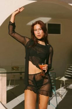 Ready to fall in love? This flattering three-piece set won’t disappoint. The ensemble features a mini skirt, long-sleeved crop top and a matching trendy scarf, all in our signature mesh fabric. The ruffles and slit details make this set pop, perfect for anyone looking to add something fun to their cover-up collection